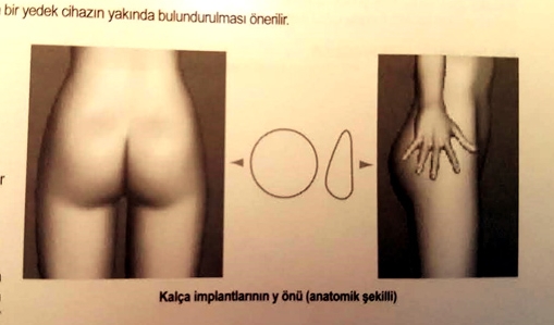 Doktorunuz bu ameliyatı gerçekten biliyor mu? Bunu yazmamın sebebi şu: geçende internette bir video gördüm. Youtube de.. Bir arkadaş popo büyütme ameliyatı yapıyor, ameliyatı yaparken video çekim yapmışlar. Bir yandan ameliyatı yapıyor, bir yandan da anlatıyor. Protezi koyarken aynen şunu söylüyor: "Bu implantlar, ince tarafı aşağıya gelecek şekilde yerleştirilmelidir" diyor ve implantları bu şekilde (yani ters!) koyuyor.. Bunu da videoya kaydedip youtube e reklam olsun diye koymuşlar. Pes yani!.. Bu videoyu indirdim.. İsteyen olursa gösterir, iddiamı kanıtlarım. Olacak iş değil. Lütfen doktorunuzun bu ameliyatı bildiğinden emin olun. Ters konan bir implant kesinlikle berbat görünecektir ve düzeltme ameliyatı gerekecektir. Açıkcası o videoyu gördüğümde hastaya acıdım (ayrıca gördüğüm kadarıyla implantı da ciltaltına koyuyor.. yanlış!).. Ameliyatı yapan arkadaş keşke implantların kutusundan çıkan kullanma kılavuzuna bir baksaymış. O kitapçıkta anatomik şekilli implantların nasıl yerleştirilmesi gerektiği çizimle gösterilmiş: bu implantlar -hastada olağan dışı bir anatomik sorun yoksa- ince kısmı yukarı ve içe, kalın kısmı aşağı ve dışa gelecek şekilde (oblik olarak karşılıklı ters V oluşturacak şekilde) yerleştirilmelidir. Aşağıdaki resim, implantların birinin kutusundan çıkan kullanım kılavuzundan alındı. Kılavuzda bu implantların nasıl konması gerektiği gösterilmiş. İmplantı ters yerleştiren arkadaşa söylüyorum: Abi, bari kılavuza bi baksaydın..